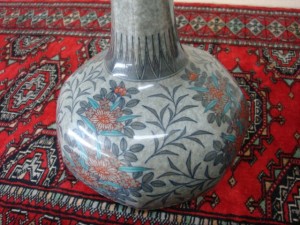 今泉今右衛門 本人作 色絵薄墨草花文花入れになります。
